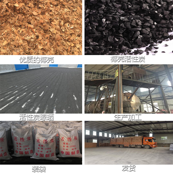 椰殼原料→碳化→破碎→活化→除雜→破碎→篩分→成品