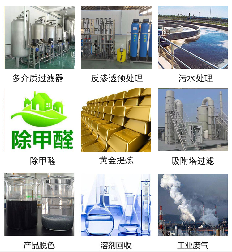 1.黃金吸附活性炭適用于現代化金礦采金生產,主要用于堆浸法或炭漿法提取黃金冶金工業中貴金屬的分離和提取。